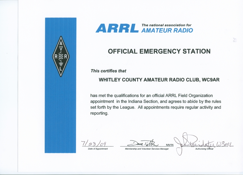 ARRL Clubs - WHITLEY COUNTY AMATEUR RADIO CLUB