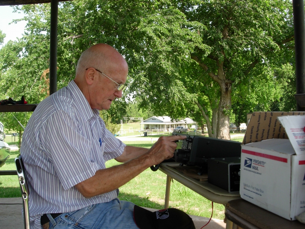 We had planned a schedule with some friends on 7.260 MHz, but we weren’t able to make contact. We did talk to a fellow ham stationed on top of Mt Scott in the Lawton area; also a Houston contact. Okay! We were off to a good start. At 1 PM local time we jumped on 20 meters and made a few contacts, but it was just too busy for a laid-back operation like ours. Fifteen meters was somewhat better but also crowded. We moved slowly around the bands, listening to all the Field Day activity, and noticed a Tennessee station had stayed on 10 meters for a couple of hours. I started calling CQ on 10 meters and after about 10 minutes, a small pileup started. Ten meters was open! We made a good deal of our contacts there. The rest were made on the Amateur Extra class portions of 15 and 20 meters.