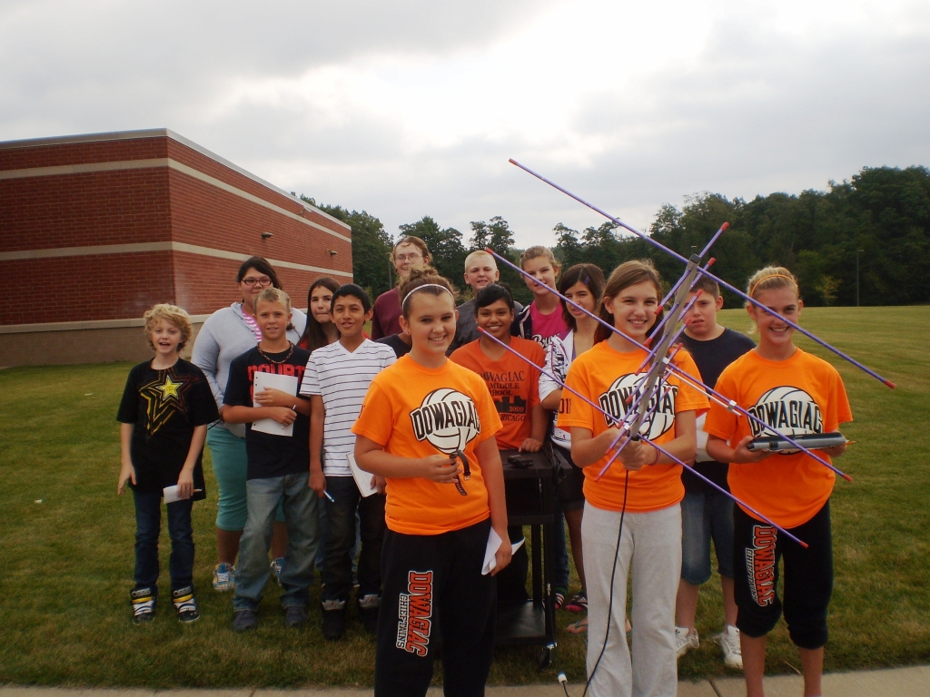 Dowagiac Middle School students were thrilled to contact ARISSat-1, and using Amateur Radio, download satellite telemetry data as well as their photo flown in space.