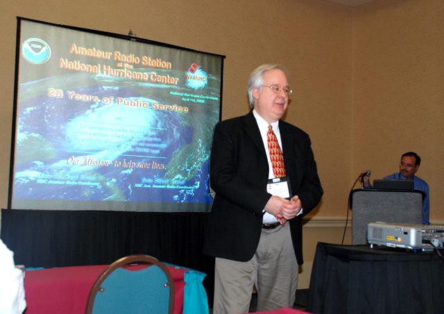 More than 2000 people attended the 30th Annual National Hurricane Conference in Orlando, Florida March31-April 4. Conference Chairman Max Mayfield stated in his opening remarks that he was pleased to see such a turnout, despite the fact that the 2007 hurricane season didn't impact the United States as in past years. ARRL Emergency Preparedness and Response Manager Dennis Dura, K2DCD, attended on behalf of the League.