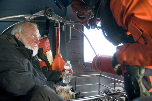 “It was about 15- to 18-foot seas, with the boat dead in the water,” Coast Guard Aviation Survival Technician Mike Linehan told San Diego television station KGTV. “The waves were pushing it away from me as I was trying to get to it. It was challenging swimming to the boat. It was really hard to talk to him at first. We found out later that he didn’t have his hearing aids in.”