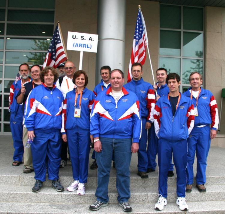 ![USAs delegation to the 2008 ARDF World Championships. Heads left to right are Bob Cooley, KF6VSE (M60); Ken Harker, WM5R (Juror); Jen Harker, W5JEN (W21); Dale Hunt, WB6BYU (Captain); Harley Leach, KI7XF (M60); Nadia Scharlau (W35); George Neal, KF6YKN (M50); Scott Moore, KF6IKO (M40); Vadim Afonkin (M40); Jay Thompson, W6JAY (M21); Charles Scharlau, NZ0I (M40), and Jay Hennigan, WB6RDV (M50). Not pictured is Richard Thompson, WA6NOL. [Photo courtesy Vadim Afonkin]](/img/130x97/exact/News/nms_464.jpg)