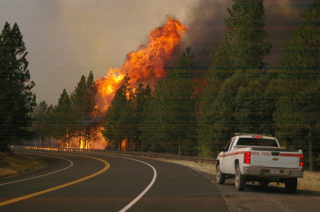 According to the National Interagency Fire Center (NIFC), the Rim Fire as of August 29 covers nearly 200,000 acres, with almost 7000 acres burned over in the past 24 hours. The Rim Fire, 32 percent contained, has now has claimed more than 110 structures — including a few houses — and the cost of fighting it is approaching $50 million. The communities of Tuolumne City, Twain Harte, Long Barn, Pinecrest and the Hetch-Hetchy watershed are threatened, as are power lines in the region. Evacuations and road and area closures are in effect. The Rim Fire is not expected to be fully contained for another 10 days or so.
