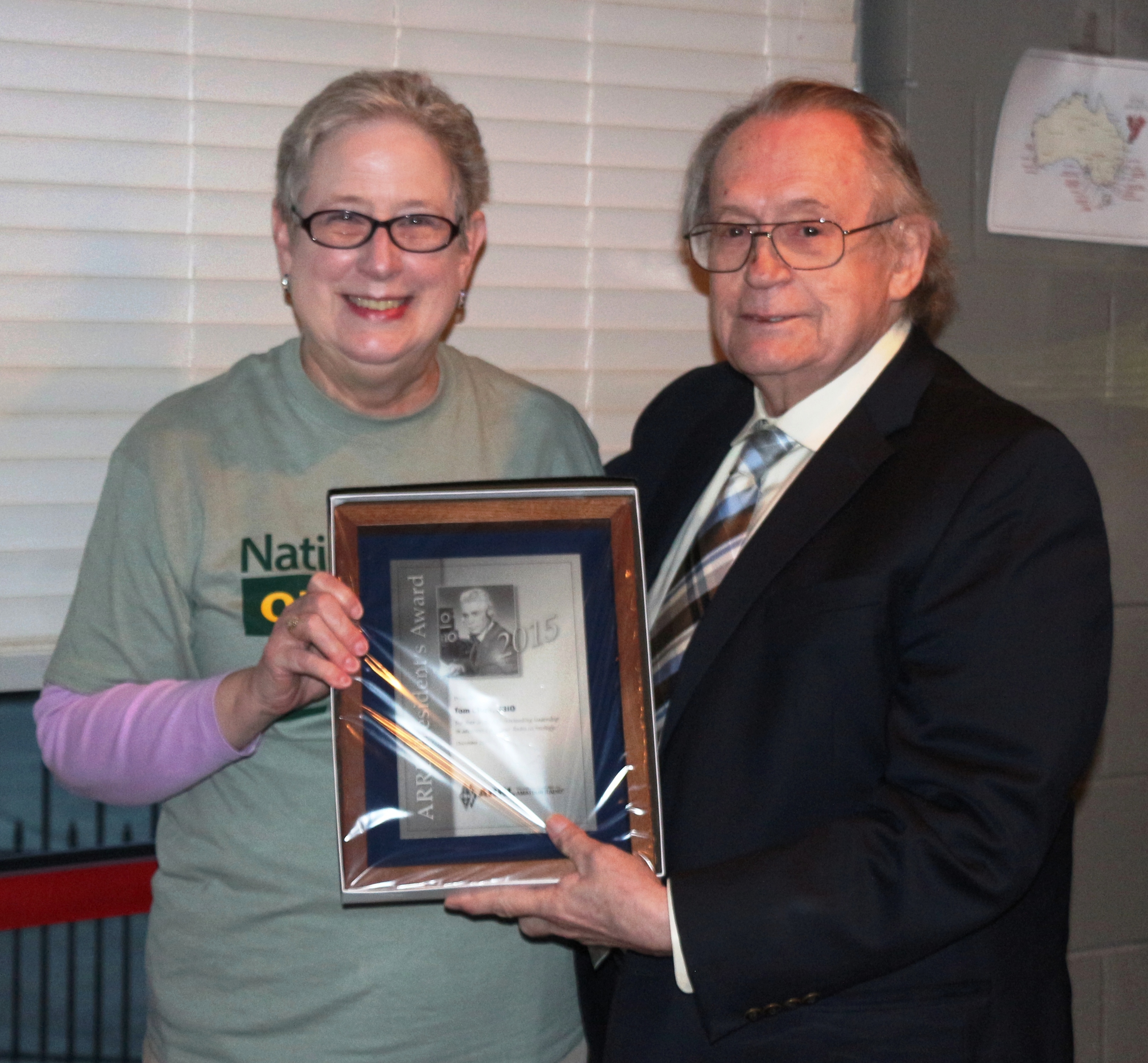 The ARRL has honored veteran AMSAT personality and Amateur Radio digital pioneer Tom Clark, K3IO (ex-W3IWI), with its President’s Award. ARRL President Kay Craigie, N3KN, presented the award plaque to Clark at a January 10 meeting of the Potomac Valley Radio Club in Blacksburg, Virginia. The plaque, which bears a likeness of ARRL Co-Founder Hiram Percy Maxim, W1AW, recognizes Clark’s 60 years of advancing Amateur Radio technology.