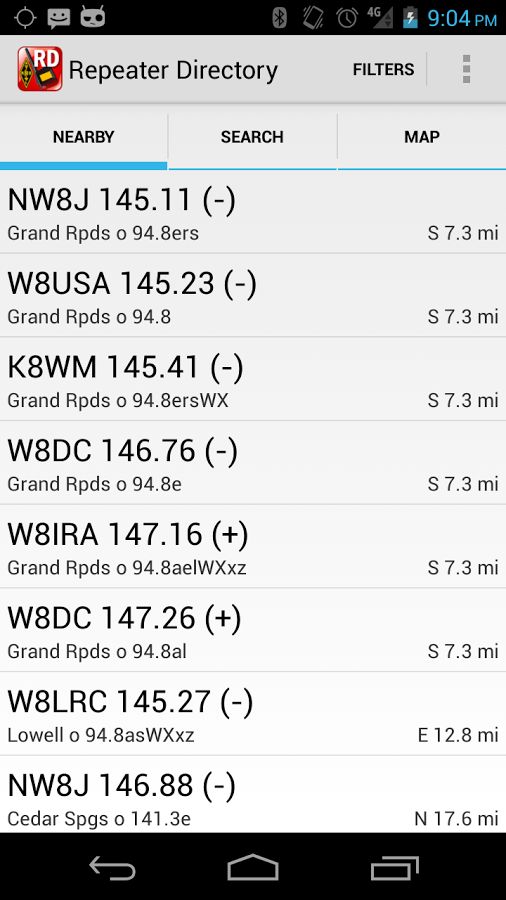 The ARRL Repeater Directory app can search for frequencies by city and state, or by current location, if you’ve enabled location services on your device. Selecting a listing reveals detailed information on the repeater and its features. Users can filter searches to see only repeaters that match certain attributes. There is also integrated mapping.