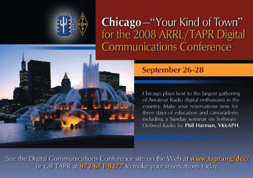 For more information on the 2008 Digital Communications Conference, please visit TAPR's DCC Web page.