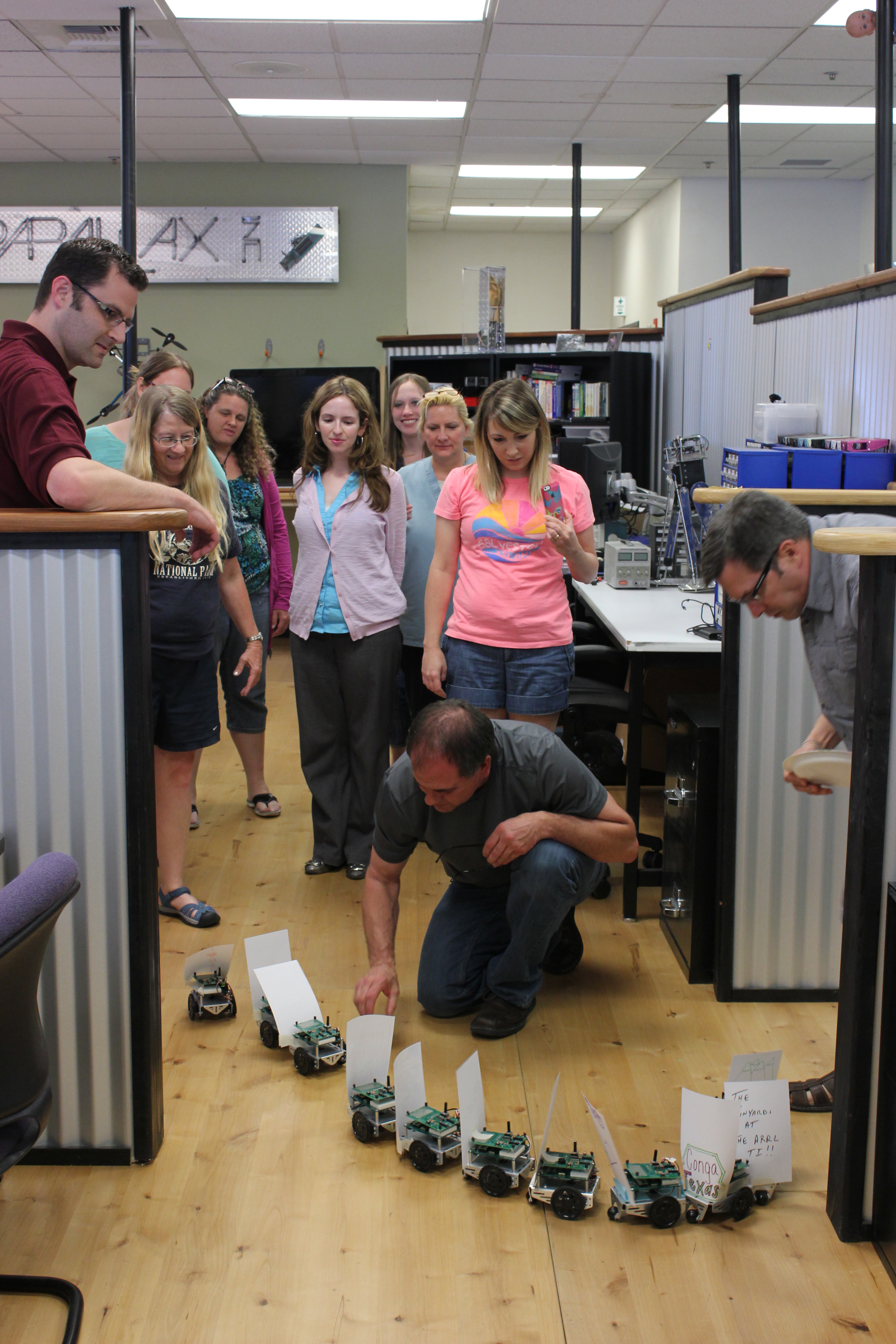 The TI-1 students also learned computer programming to control Boe-Bot® robots on wheels that they then run through a maze to check their coding skill.
