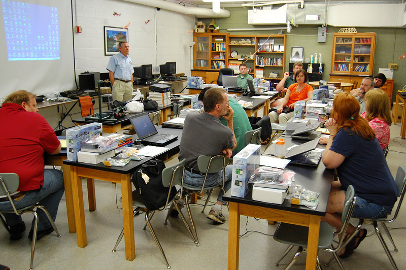 ARRL Teachers Institute Instructor Nathan McCray, K9CPO, made the trek to California to lead the next Teachers Institute. Held at Parallax -- the manufacturer of the BOE-BOTs that are used by TI participants -- this TI had students from all areas of the US, including Hawaii, Massachusetts, Florida, Texas and Wisconsin. Thirteen teachers were in the group, including four from the California Aerospace Academy.