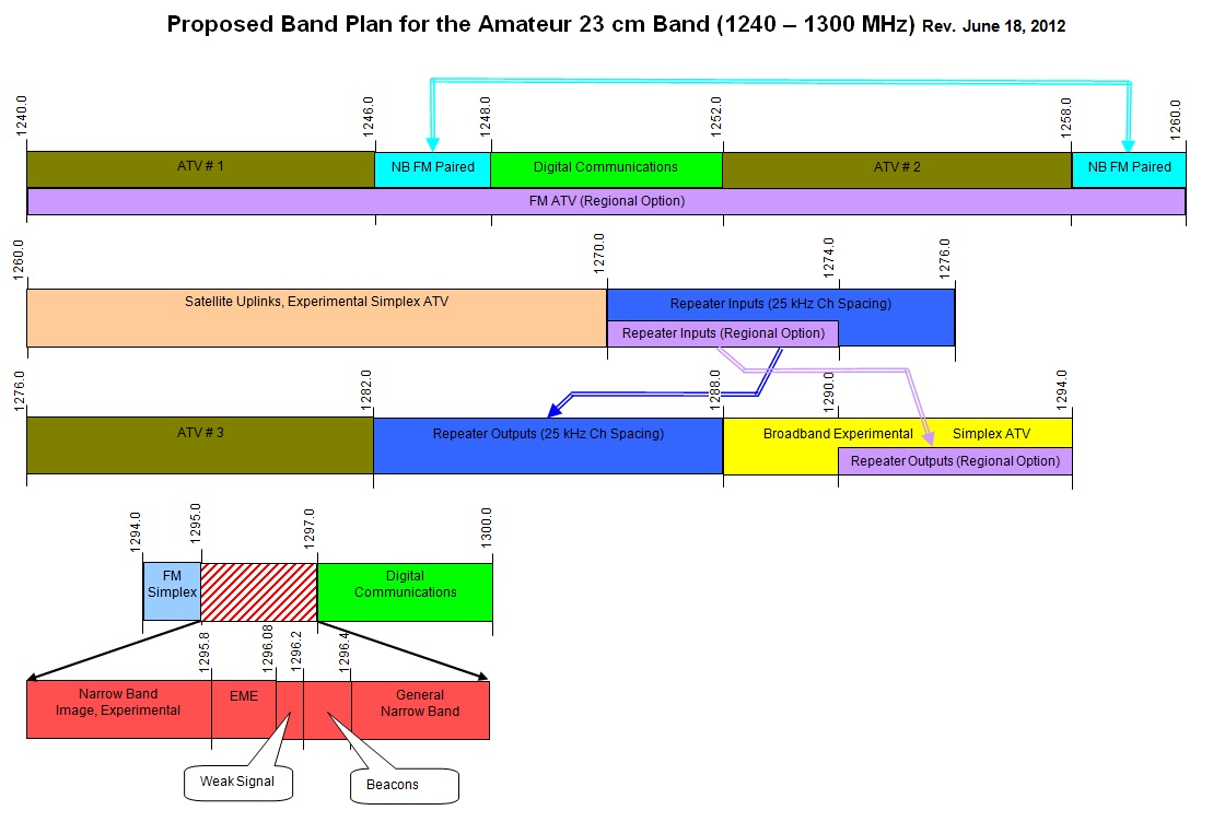 Last winter, the ARRL UHF/Microwave Band Plan Committee asked the Amateur Radio community about current, planned and projected uses of the Amateur bands between 902 MHz and 3.5 GHz. The excellent level of response provided us with the basis to complete drafts of the 9 cm, 13 cm and 33 cm revised band plans for ARRL Board approval. The Committee has now prepared for your consideration a draft band plan for 23 cm (1240-1300 MHz), the final band on its assigned list. Please look over the accompanying draft and let us know if you have any major concerns.