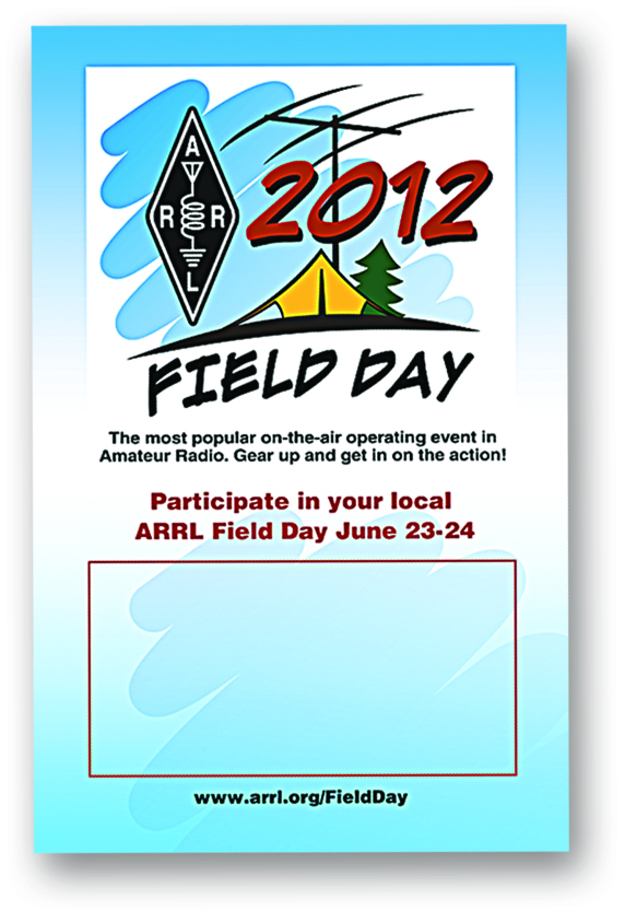 Clubs, order early! Collect orders from members and place a single order -- pay only $12.50 shipping for orders over $50 (while supplies last). ARRL Field Day is June 23-24, 2012. Fulfill all your Field Day apparel needs at the Field Day Supplies section of the ARRL website.