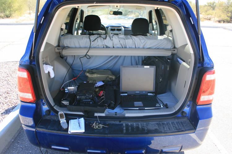 I backed my vehicle up to the junction box, opened my tailgate, hooked up my equipment and set up a lawn chair. I began working stations around 1932 UTC and finished about 4 hours later. Some of the contacts I made were CW, some were PSK31. In some cases I lost folks in fading or noise, in some cases they lost me. Nonetheless, I was astounded at how far my tiny signal projected.
