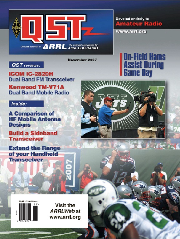 Outside of his League activities, Mendelsohn was active both as the Communications Director of the New York City Marathon and, along with his wife Heidi, W2MLW, as the Game Day Frequency Coordinator (GDC) for the New York Jets. The November 2007 issue of QST featured Mendelsohn on its cover (see below), along with an article about him and the GDC program (Editor’s note: you must be logged in to the ARRL website to view the article). Mendelsohn was inducted into the CQ Hall of Fame last week for his contributions to the ARRL, the New York City Marathon and the National Football League.