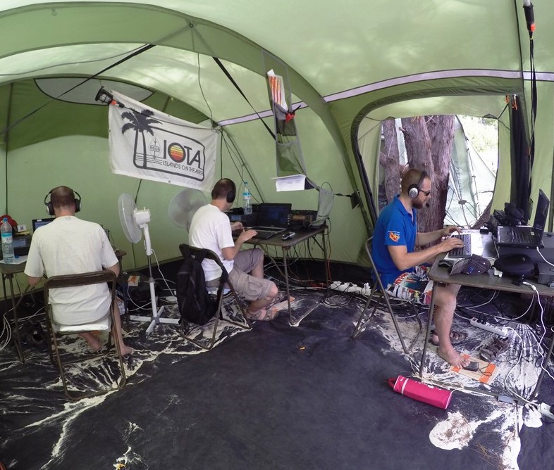 “The organization is quite difficult to match with the high tide,” the team said in an 0845 UTC update on April 10. “We have only short windows, and wind/waves make things difficult. We had to QRX few hours this afternoon, and we might also take breaks tomorrow to put bigger antennas down and load/unload the Zodiac.”