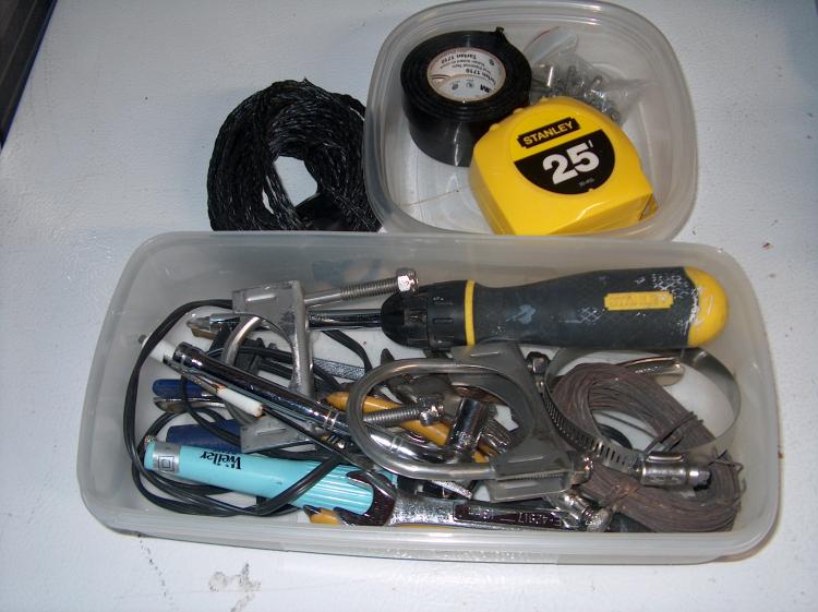 My toolkit could not have been simpler. I packed it in two small plastic containers. The basics were locking pliers, one wrench, one socket wrench and a screwdriver.