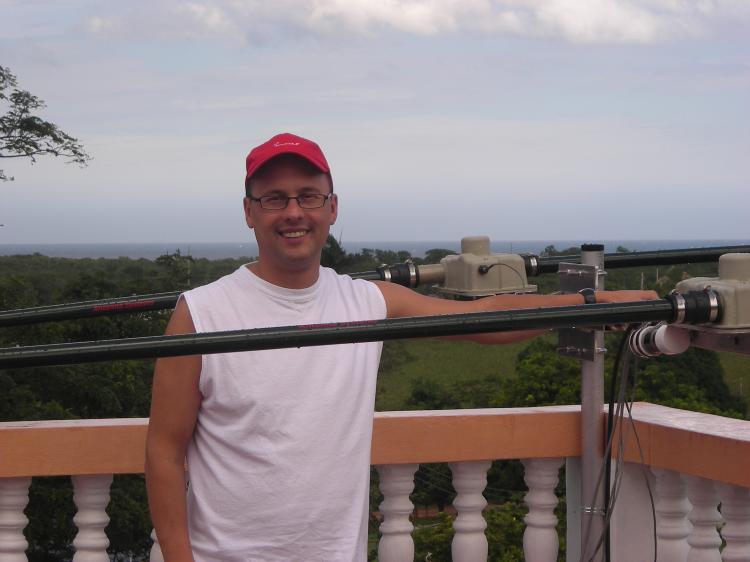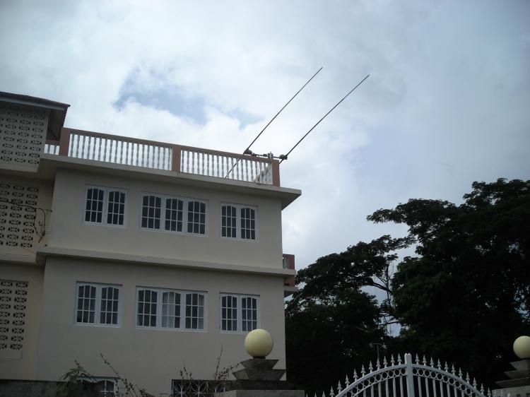 Remember the high SWR problem back in Winnipeg? Well, I had it in Jamaica, even though the antenna was about 13 meters above the ground. I tried to make contacts on other bands but with no luck. The 17 meter band had the lowest SWR, so that was the band of choice.