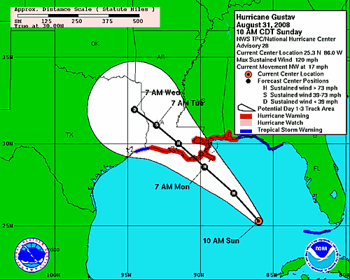 ![This map shows Hurricane Gustav's projected path as of Sunday morning, August 31. Gustav is expected to make landfall within 24 hours. [Map courtesy of the National Oceanic and Atmospheric Administration]](/img/130x97/exact/News/nms_381.gif)