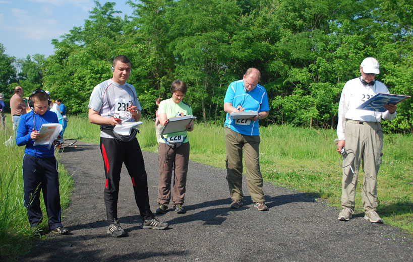 In the classic ARDF championships, competitors start in small groups made up of different age/gender categories. As they seek the hidden transmitters, they navigate through the forest from the starting corridor to the finish line — a distance of 4 to 10 kilometers. They plot their direction-finding bearings on orienteering maps that show terrain features, elevation contours, and vegetation type.