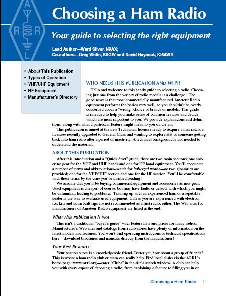 The most common question asked by new radio amateurs is "Now that I have my license, what kind of radio should I get?" The ARRL, in an attempt to help newcomers to Amateur Radio answer that very question, has added a bonus supplement to the ARRL Ham Radio License Manual. "Choosing a Ham Radio: Your Guide to Selecting the Right Equipment" is aimed at the new Technician licensee ready to acquire a first radio, a licensee recently upgraded to General class and wanting to explore HF or someone getting back into Amateur Radio after a period of inactivity.