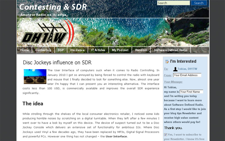 To learn all about the project, visit Tobias’ Contesting & SDR blog. A good starting point is his posting titled “Disc Jockeys influence on SDR.”.