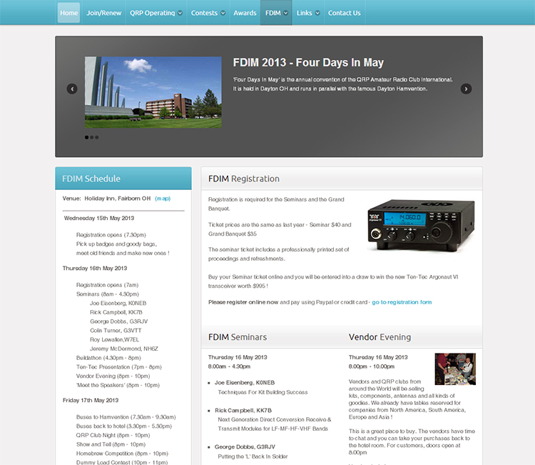 The Dayton Hamvention® is coming up in just a few more weeks. Running in parallel with Hamvention is the Four Days In May (FDIM) event -- a ham radio convention with an emphasis on low-power operating (QRP) -- sponsored by QRP Amateur Radio Club International (QRPARCI). FDIM will take place May 16-19 at the Holiday Inn in Fairborn, Ohio.