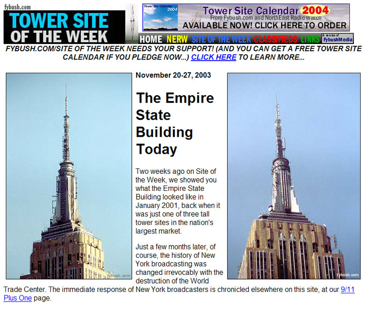 Finally, if you are a fan of antenna structures, you must check out Scott Fybush's Tower Site of the Week (a different piece of steel, every Wednesday). Scott visits radio tower sites throughout the world and writes about his visit on his Web site accompanied by photographs, new and old. It is always an interesting read.
