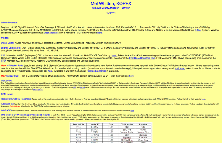 I received an e-mail asking me how to get started in digital voice. That is one mode I have not yet explored, so I have no hands-on information to relay to my correspondent; however, I know someone who has lots of expertise in digital voice: Mel Whitten, K0PFX.
