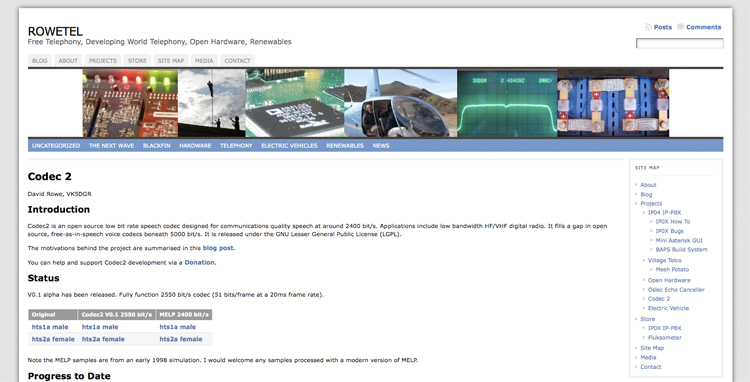 One year later, David announced the Version 0.1 alpha release: “Codec2 is an open source, low bit rate speech codec designed for communications quality speech at around 2400 bit/s. Applications include low bandwidth HF/VHF digital radio. It fills a gap in open source, free-as-in-speech voice codecs beneath 5000 bit/s. It is released under the GNU Lesser General Public License (LGPL).”