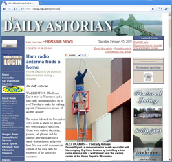 Continuing in that vein this week, check out this January 29 story from The Daily Astorian of Astoria, Oregon. Don Hillgaertner, WA7TEM, the county coordinator for the local RACES, and Ken Lucke, WA7PIX, vice president of the Sunset Empire Amateur Radio Club (SEARC), worked with Home Depot's corporate office to install a ham radio station at the local Home Depot to serve the public in times of emergencies. Visit the W7BU/SEARC Web site to see and read more about the installation.
