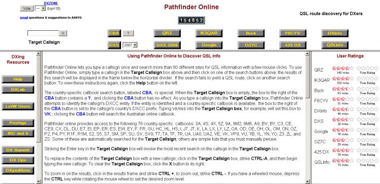 Dave Bernstein, AA6YQ, just told me about a cool tool for finding QSL information, Pathfinder Online where you need enter the call sign in question only once, then with a few mouse clicks you can search more than 80 different sites for QSL information -- including 74 country-specific call sign directories and DX Summit's spot notes going back to 1997. Now that's progress!