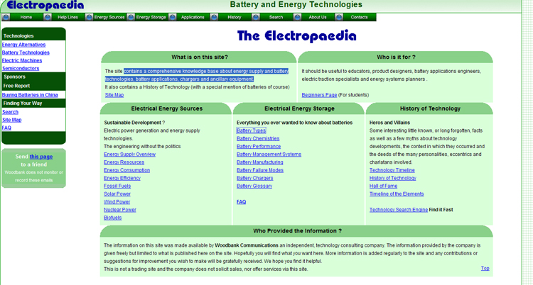 The Electropaedia of battery and energy technologies “contains a comprehensive knowledge base about energy supply and battery technologies, battery applications, chargers and ancillary equipment.”