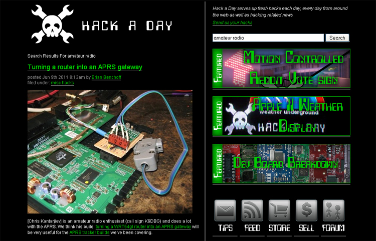 Hack a Day rightfully claims that it “serves up fresh hacks each day, every day from around the web, as well as hacking related news.” Occasionally, the hacks are ham radio specific. Oftentimes, the hacks are in the ham radio neighborhood.