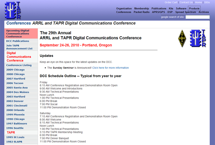 By the way, let me be upfront about this week’s installment of Surfin’: I have been a member of TAPR for 25 years. I have been editor of their newsletter, Packet Status Register (PSR), for eight years, its secretary and a member of its Board of Directors for seven years. So I have an interest in promoting the DCC, but I have also been a member of the ARRL, the co-sponsor of the DCC, for 45 years, so, as my editor Khrystyne Keane, K1SFA, is wont to say, ’nuff said.
