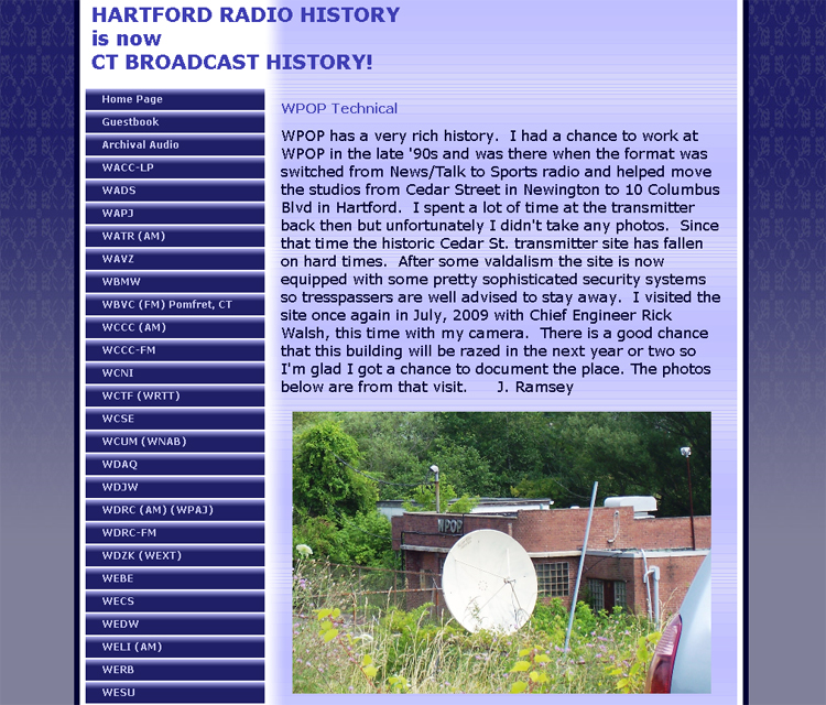 One more by the way -- Dave Kaplan, WA1OUI, alerted me about John Ramsey’s, W1JNR, Connecticut Broadcast History Web site, which is “Preserving the History of Connecticut Radio and TV.” I know some of you are thinking that this Connecticut-centric Web site would be of little interest beyond the borders of the Nutmeg State, but remember that Connecticut was a hotbed of radio pioneering and experimentation, and the histories of the stations covered on W1JNR’s Web site reflect this.
