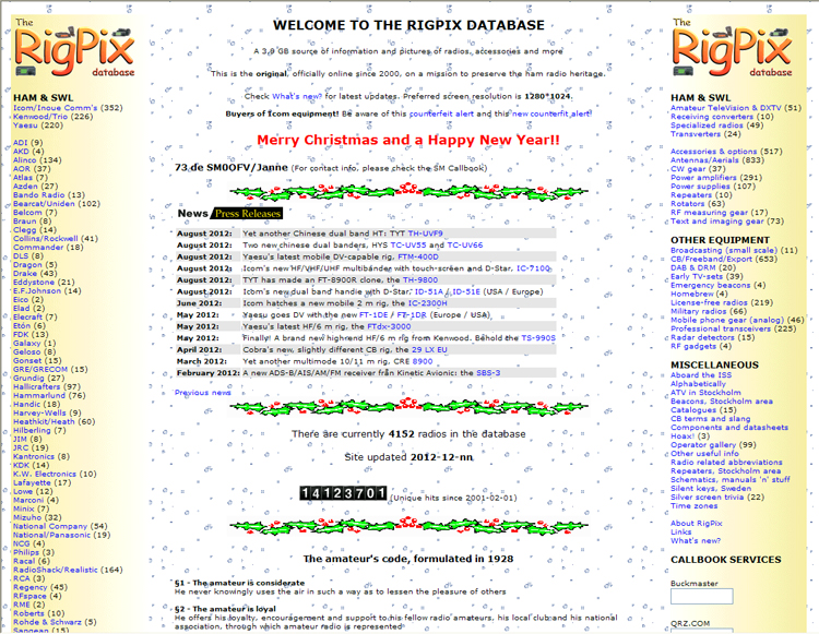 A few people wrote to tell me that that I missed another website similar to RigReference.com: The RigPix Database of Janne Andersson, SM0OFV. I have mentioned The RigPix Database here in the past, but it is worth mentioning again. Like RigReference.com, RigPix has an image of the radio and lists some of the technical specifications of the radio.