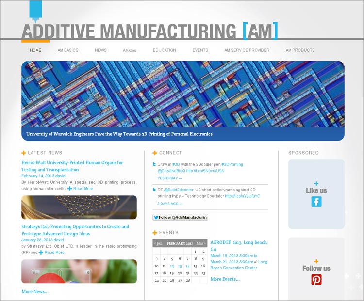 According to the AM website, a computer, 3-D modeling software -- such as Computer Aided Design (CAD) -- machine equipment and layering material is common to 3-D modeling: “Once a CAD sketch is produced, the AM equipment reads in data from the CAD file and lays downs or adds successive layers of liquid, powder, sheet material or other, in a layer-upon-layer fashion to fabricate a 3-D object.”