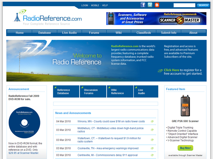 By the way, RadioReference.com also has an extensive online database of public service radio frequency assignments in the U.S.