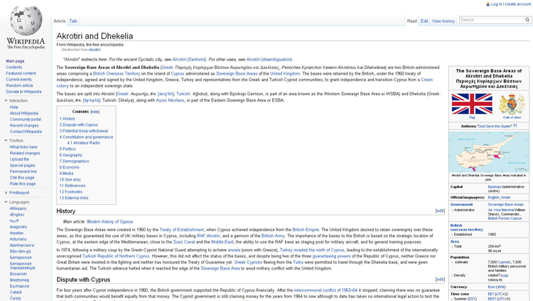 Consult Wikipedia and I find that Akrotiri is paired with Dhekelia, another British military base on Cyprus. (Dhekelia has its own page on Factbook. On the other hand, Guantánamo has no Factbook page.) Also, I could not help noticing that Factbook is Wikipedia’s source for its Akrotiri and Dhekelia maps.