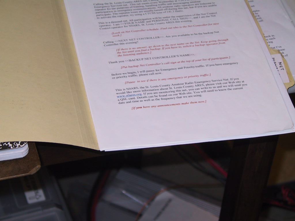 The setting: My basement shack on a Wednesday evening. I was the net control operator for the St Louis County ARES weekly 2 meter voice net.