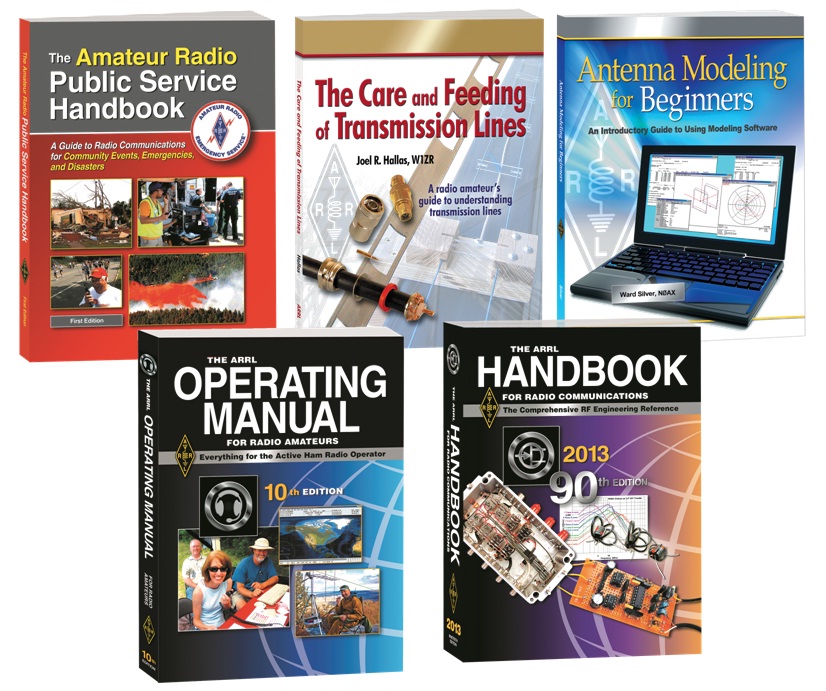 These five books are available from your ARRL Dealer or from the ARRL Store. The ARRL Handbook for Radio Communications (90th edition) -- hardcover (ARRL Order No. 4197), ISBN 978-0-87259-419-7, $59.95 retail, special ARRL Member Price $49.95 (limited time only), plus shipping; The ARRL Handbook for Radio Communications (90th edition) -- softcover (ARRL Order No. 4050), ISBN 978-0-87259-405-0, $49.95 retail, plus shipping; The ARRL Operating Manual (10th edition) (ARRL Order No. 5965), ISBN 978-0-87259-596-5, $34.95 retail, special ARRL Member Price $29.95, plus shipping; The Amateur Radio Public Service Handbook (ARRL Order No. 4845), ISBN 978-0-87259-484-5, $39.95 retail, special ARRL Member Price $34.95, plus shipping; The Care and Feeding of Transmission Lines (ARRL Order No. 4784), ISBN 978-0-87259-478-4, $27.95 retail, special ARRL Member Price $24.95, plus shipping; Antenna Modeling for Beginners (ARRL Order No. 3961), ISBN 978-0-87259-396-1, $38.95 retail, special ARRL Member Price $34.95, plus shipping. Telephone 860-594-0355 or toll-free in the US 888-277-5289; www.arrl.org/shop; pubsales@arrl.org.