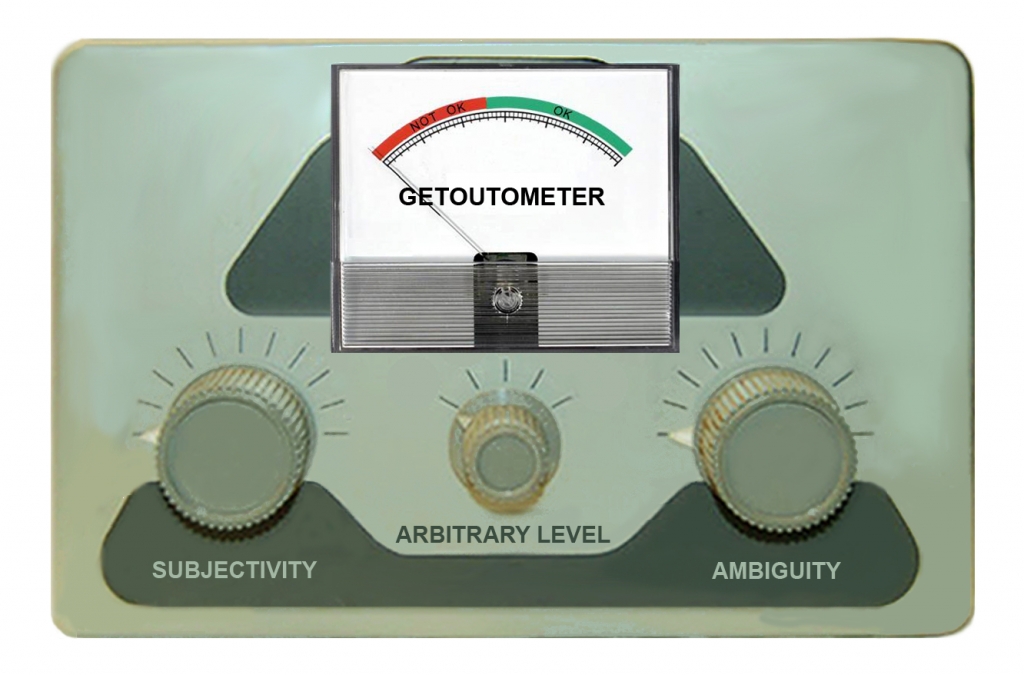 One of our group, Dave Dowler, KA6BFB, created a solution — the Getoutometer shown in Figure 1. Its cleverness goes right to the philosophic heart of all SHEs by taking on my own least liked SHE.
