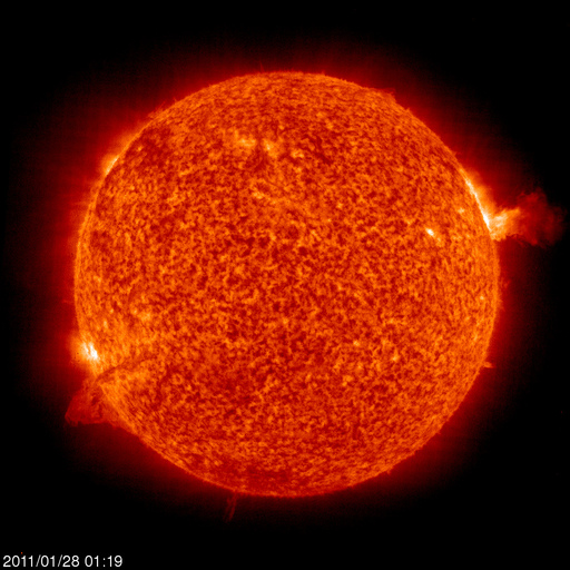 On Thursday, January 27, the sunspot number was 0, but a new spot is emerging near the horizon in the southeast quadrant. Sunspot numbers for January 20-26 were 32, 42, 36, 38, 28, 27 and 25, with a mean of 32.6. The 10.7 cm flux was 82.3, 87.5, 87.7, 84.3, 82.5, 80.5 and 80, with a mean of 83.5. The estimated planetary A indices were 3, 3, 2, 2, 3, 4 and 3, with a mean of 2.9. The estimated mid-latitude A indices were 4, 2, 3, 1, 2, 3 and 2, with a mean of 2.4.