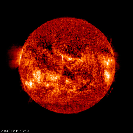 Spaceweather.com reports that a CME has been coming toward us since July 30, when a magnetic filament erupted on our Sun. It may sideswipe our magnetic field on Saturday, August 2, and there is a 30 percent chance of geomagnetic storms in polar regions.