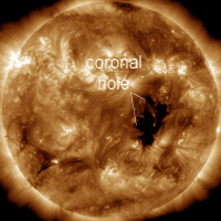 "Watch for a larger coronal hole that has since moved to the Sun's