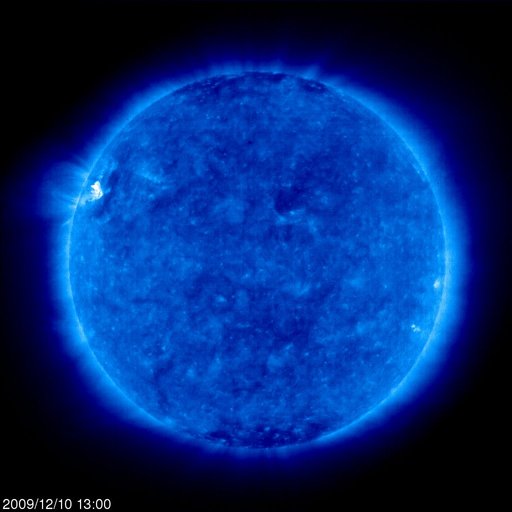 Finally! A sunspot appeared on Wednesday, December 9, giving us a daily sunspot number of 13, following 16 days of no sunspots. And on December 10, the sunspot number was 13. The new group is number 1034, and it is a Solar Cycle 24 spot, as all sunspots have been since number 1016 on April 29-30, 2009. Sunspot numbers for December 3-9 were 0, 0, 0, 0, 0, 0 and 13 with a mean of 1.9. The 10.7 cm flux was 71.6, 71.5, 71.7, 71.9, 71.1, 72.2 and 73 with a mean of 71.9. The estimated planetary A indices were 0, 0, 3, 2, 2, 1 and 0 with a mean of 1.1. The estimated mid-latitude A indices were 0, 0, 3, 1, 2, 0 and 0 with a mean of 0.86.