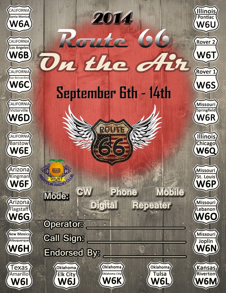 More information on the Route 66 On The Air special event, including suggested operating frequencies, is available on the Citrus Belt ARC website. E-mail for more information. — Thanks to John Bigley, N7UR/Nevada Amateur Radio Newswire
