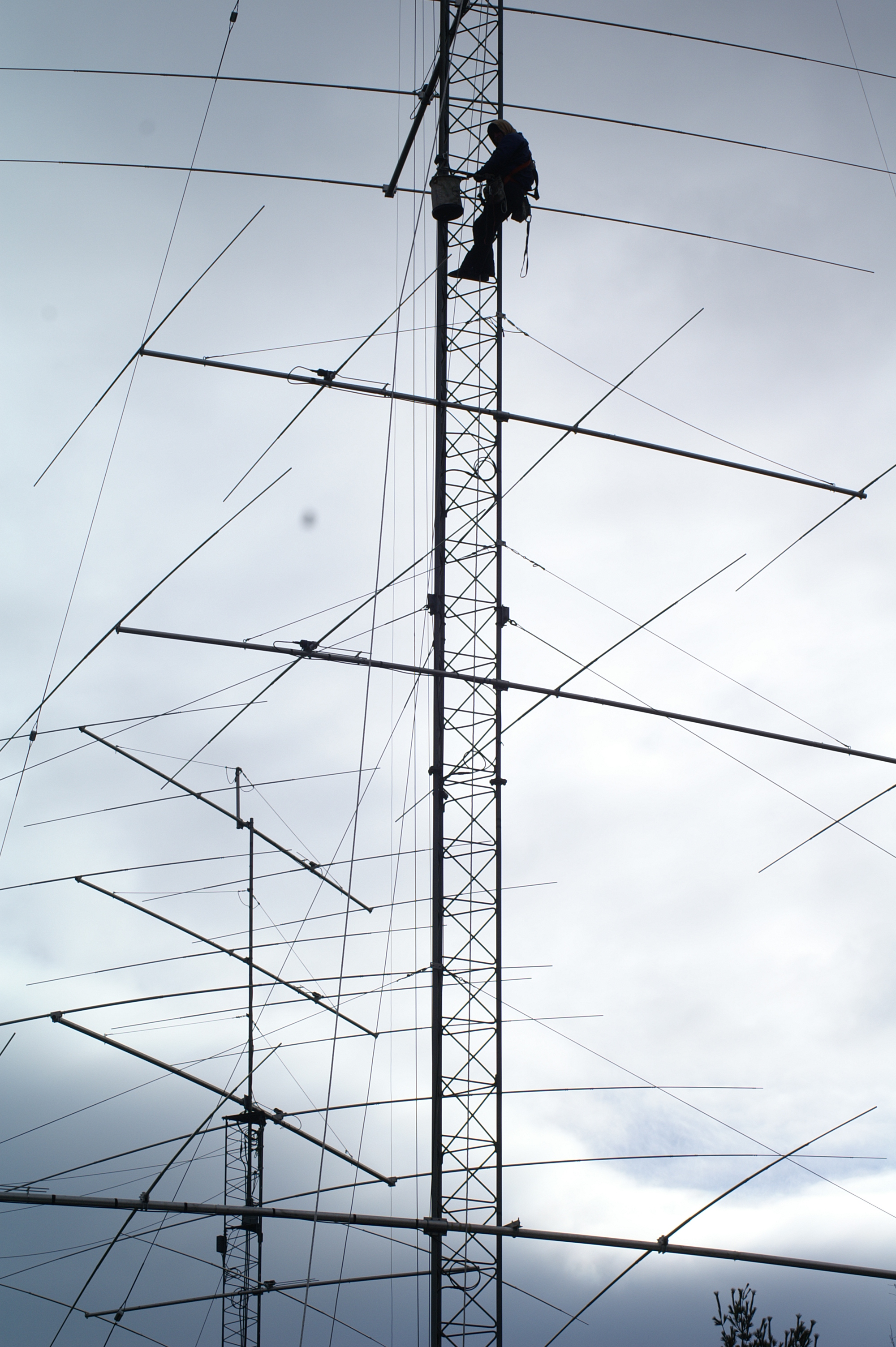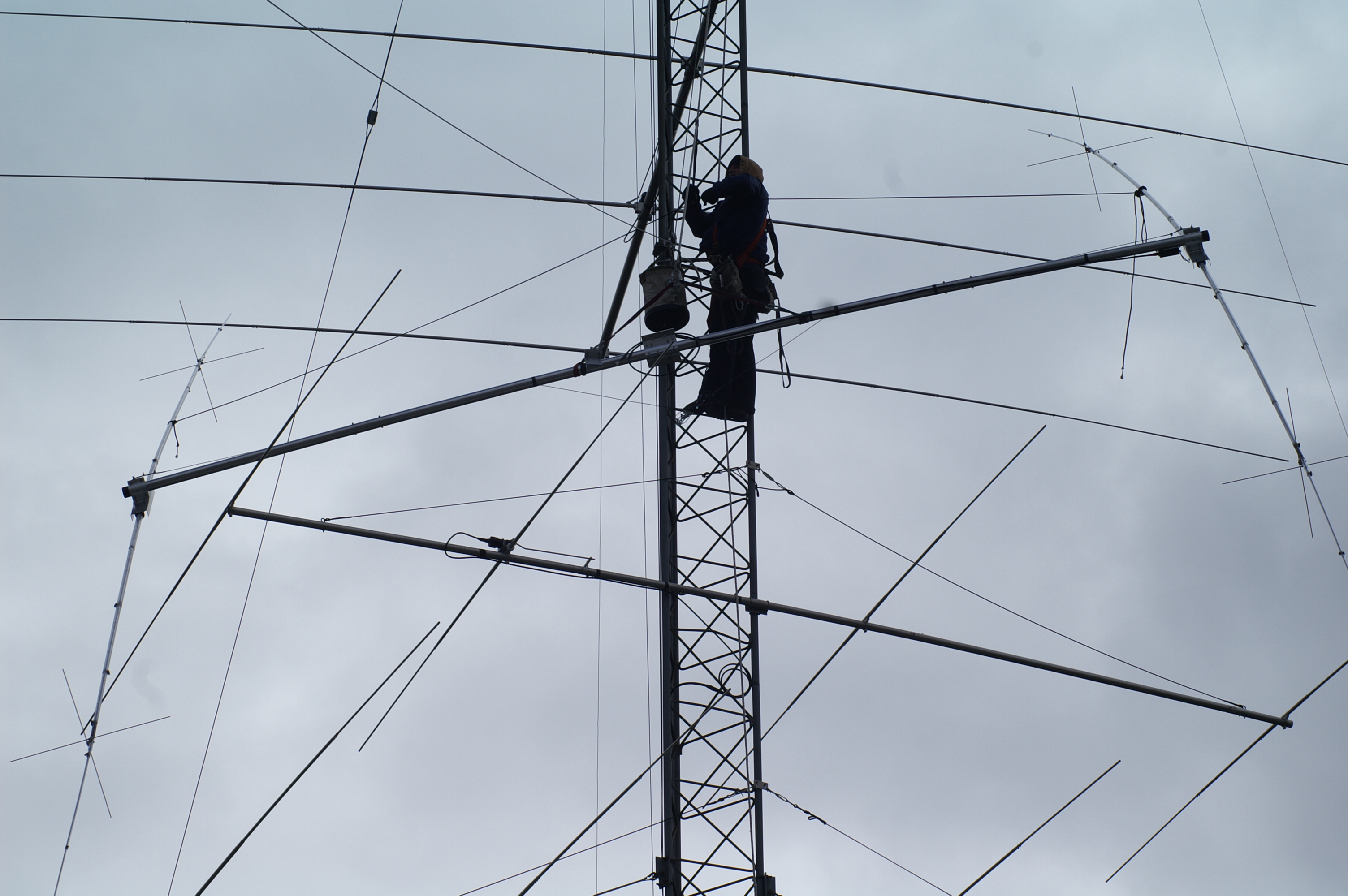 “Until we could get these antennas replaced, we had some temporary fixes so we could still send out the bulletins and provide a station for our visitors,” Carcia explained. “For 40 meters, I homebrewed a ‘fat dipole,’ and for 80 meters, I strung a simple dipole off the north tower.”
