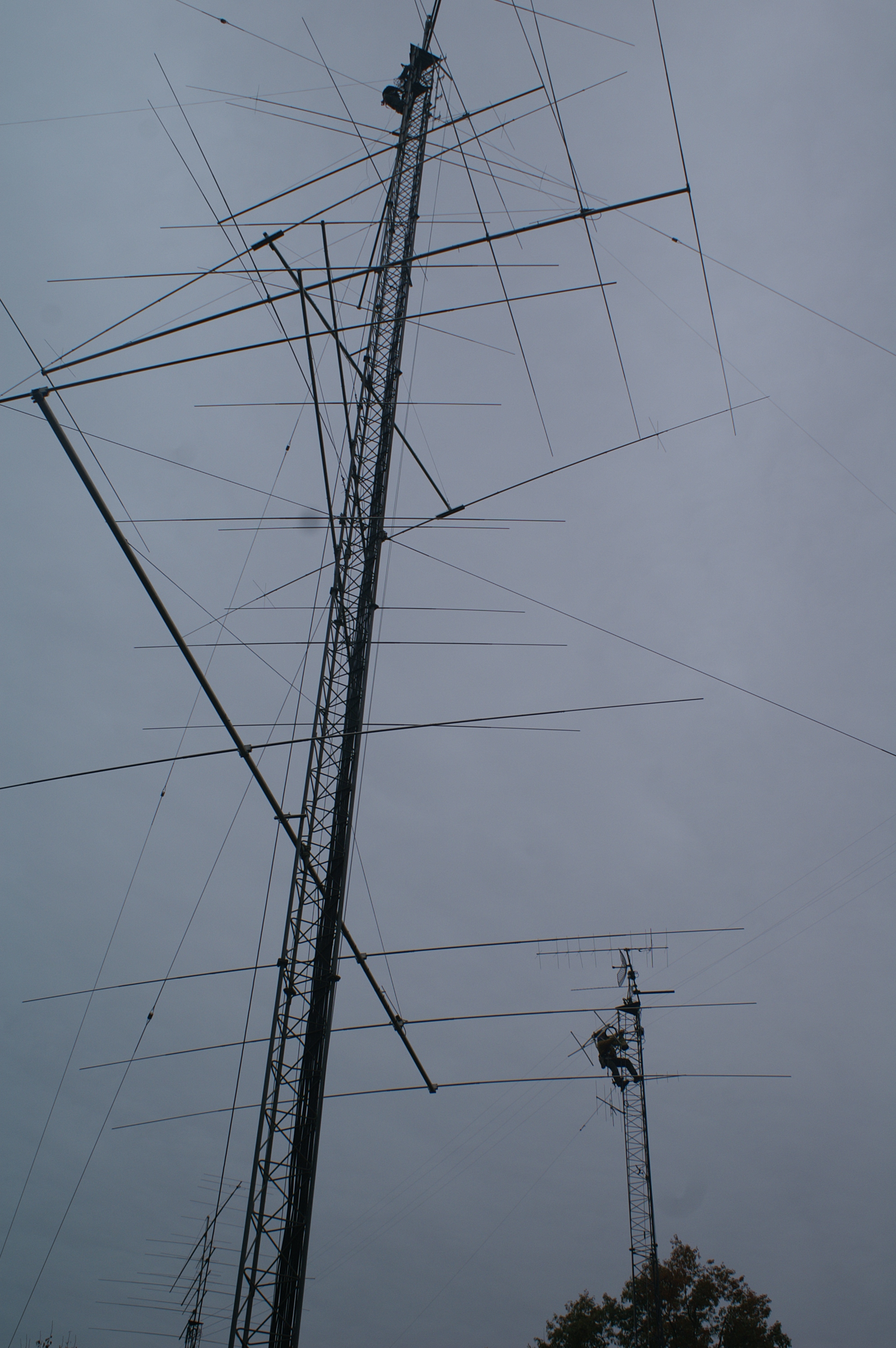 On October 24, Matt Strelow, KC1XX, and Andrew Toth of XX Towers came to Newington to inspect the antennas and towers at W1AW, the Hiram Percy Maxim Memorial Station, and W1HQ, the Laird Campbell Memorial HQ Operators Club. In addition to the annual autumn inspections, they also repaired some of the W1AW antennas.