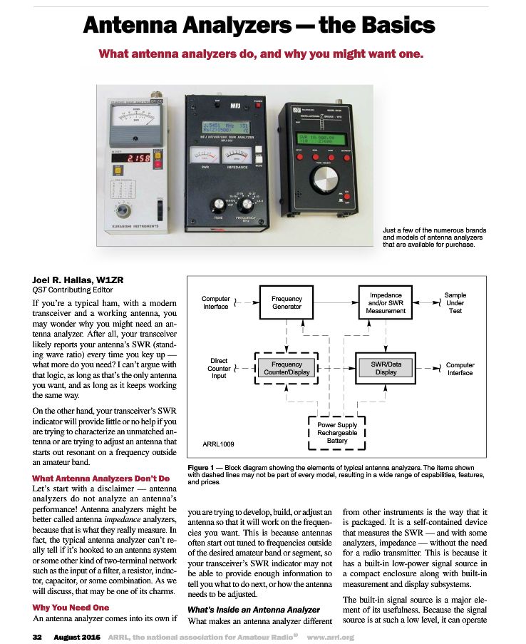The winning article for the August 2016 QST Cover Plaque award is “Antenna Analyzers -- the Basics” by Joel R. Hallas, W1ZR.