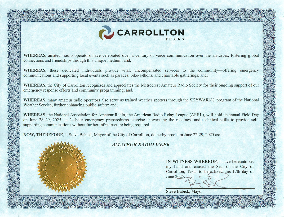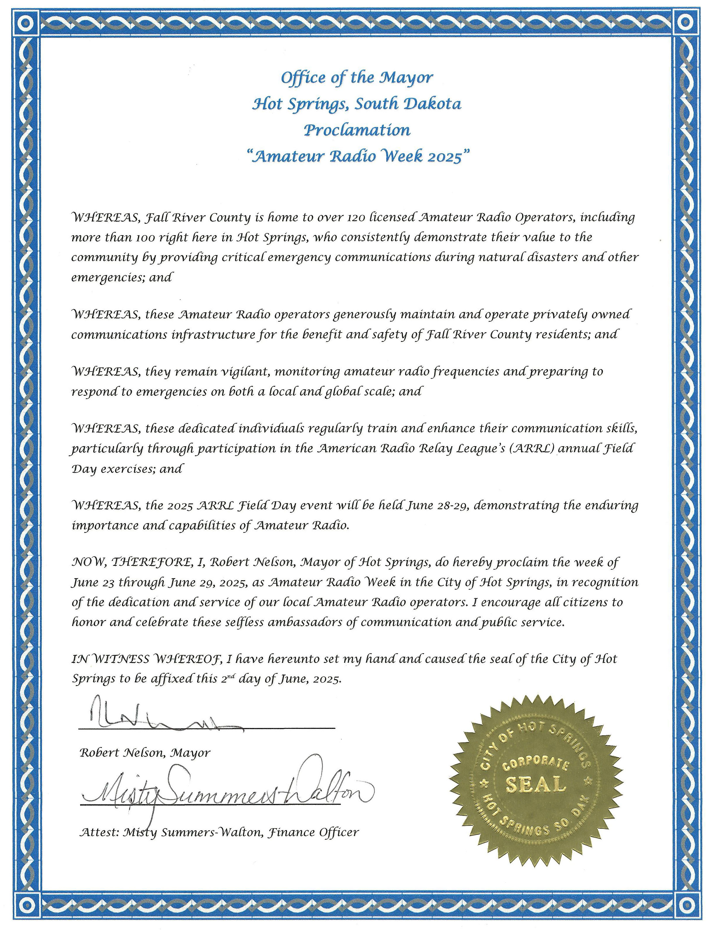 If your ARRL Section or club has received a proclamation from local, county, or state officials, please send it to pr@arrl.org for inclusion on this page.