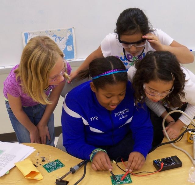 The Radio Shack Electronics Learning Lab is probably the best of all the kits we acquired this year. The kids are learning about resistors and are using them in that kit. The kits from Ramsey don't have separate resistors so the kids have to look at their bands and figure out how many ohms of resistance they are. They have really been doing well with this this year. Thank you for your generosity to our program!.”